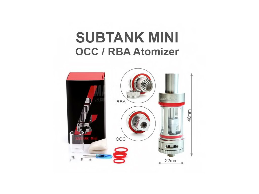 Kangertech Subtank Mini je menší verze první řady Kangertech Subtank. Tento clearomizer využívá nové žhavicí hlavy OCC a Mini RBA. OCC se vyznačuje svou odolností, čistou chutí a jedinečným designem. Tyto hlavy jsou o dvou odporech a to 0,5ohm (vhodné pro baterie s výkonem 15-30W) a 1,2ohm (vhodné pro baterie s výkonem 12-25W). Před použitím je nutné nakapat liquid i přímo na žhavicí hlavu. Zatímco Mini RBA si umožňuje vytvářet spirálky dle vlastní potřeby. Jeho další předností je vylepšený systém průchodu vzduchu pro ještě lepší kouřivost. Celý clearomizer je vyrobený z kvalitní nerez oceli a pyrexu. Objem tohoto clearomizeru je 4,5ml při hlavě OCC i při Mini RBA.