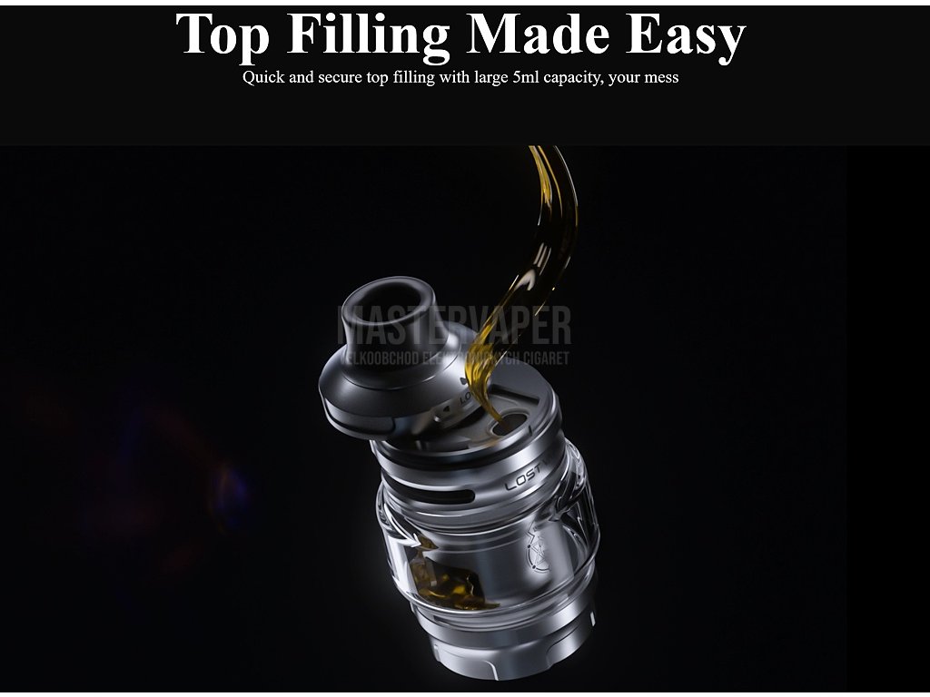 Snadné plněníInovativní horní výsuvný systém plnění představuje jeden z nejvýraznějších vylepšení druhé generace. Stačí pootočit top cap pro odemknutí pojistky a následně jej vysunout - odhalíte velkorysý plnicí otvor, kterým snadno doplníte e-liquid z jakékoli lahvičky. Po zavření je systém díky zamykací pojistce dokonale utěsněn a vyloučeno je jakékoli nechtěné otevření během nošení v kapse či manipulace. |