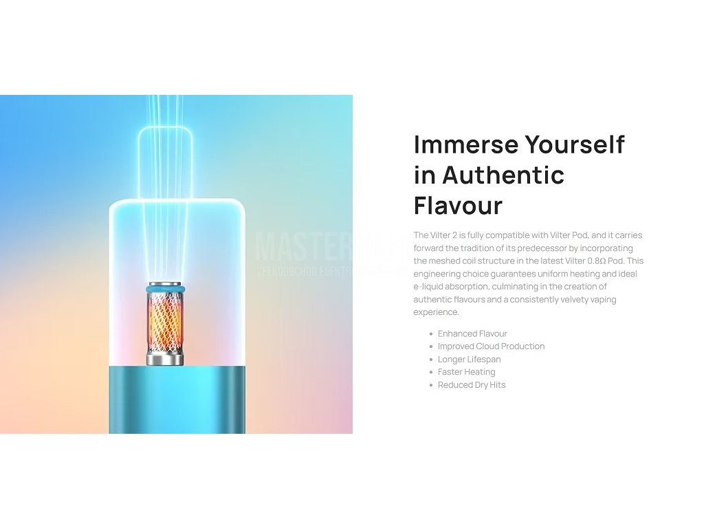 Aspire Vilter 2 vyniká především díky své mimořádně intuitivní obsluze založené na pokročilém systému automatického žhavení, který je aktivovaný jednoduše potahem z náustku. Není zde vůbec třeba mačkat žádná tlačítka ani zdlouhavě nastavovat složité parametry – jednoduše si přiložíte náustek ke rtům, lehce potáhnete a okamžitě se začne vytvářet hustá, chutná a aromatická pára plná intenzivní chuti. V bohatém balení naleznete kvalitní plastový pod s praktickým objemem 2ml, který je vybaven integrovanou moderní mesh žhavící hlavou s odporem 0,8Ω pro optimální výkon. Tato pokročilá mesh spirálka zajišťuje bleskově rychlé a dokonale rovnoměrné zahřívání e-liquidu, díky čemuž si vychutnáte maximálně intenzivní a věrnou chuť s každým jednotlivým nádechem bez kompromisů. Pod nabízí ideálně utažený potah ve stylu MTL (mouth-to-lung), který ocení zejména ti uživatelé, kteří přecházejí z klasických tabákových cigaret a hledají podobný pocit. Zajímavým a praktickým prvkem je možnost volby mezi dvěma různými typy náustků – klasickým odolným POM náustkem nebo speciálním filtrovým náustkem, jenž svým charakteristickým designem a pocitem velmi připomíná tradiční tabákové cigarety. Aspire Vilter 2 je navíc plně zpětně kompatibilní s původními Aspire Vilter pody s odporem 1Ω, což vám poskytuje ještě větší flexibilitu a možnosti při výběru podů podle vašich preferencí.