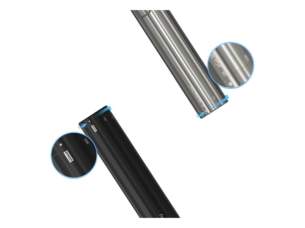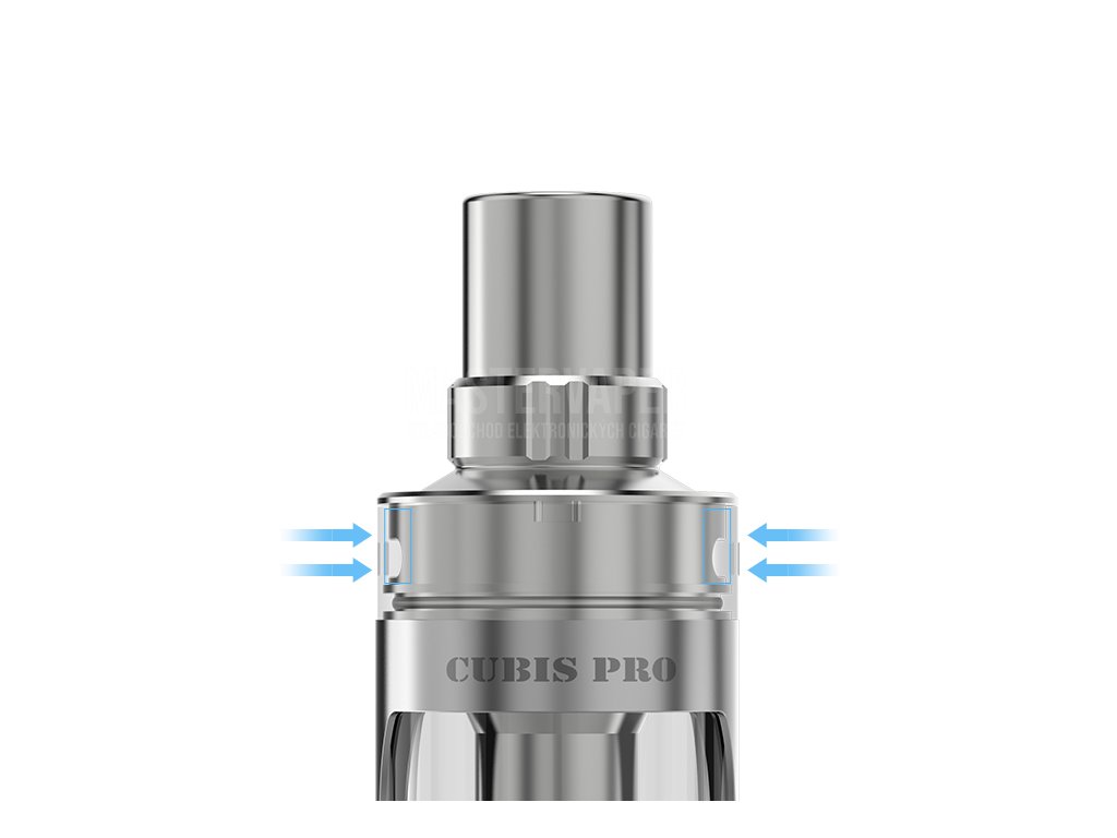 Joyetech eGo Mega Twist+ je propojení veleúspěšného clearomizeru CUBIS Pro a zbrusu nové baterie eGo Mega Twist+ o kapacitě 2300mAh. Ve spodní části baterie se nachází regulační kroužek pro nastavení výkonu (5W-30W) a módu BYPASS - využívá maximální výkon baterie bez ohledu na materiál spirálky = žádné nastavování, lze využít i atomizery pro režim TC. Spínací tlačítko je lehce ovladatelné s barevnou indikací změny režimu. Mezi její další přednosti patří dvojitý ochranný obvod, tj. ochrana proti přebití a podbití. Clearomizer CUBIS Pro je vylepšená verze původního modelu. První novinkou je navýšení objemu nádržky z 3,5ml na 4ml. Je vylepšen systém horního plnění, kde již nemusíte odšroubovávat celou vrchní základnu se žhavící hlavou, ale jen část pod náustkem a liquid plníte jedním ze dvou otvorů. Lze samozřejmě plnit i jako u předchozí verze, kde po odšroubování vrchní části, která obsahuje žhavící hlavu, plníte liquid do samotného těla clearomizeru, kde není již žádný kouřovod, takže v plnění nic nepřekáží a liquid můžete do clearomizeru doslova nalít a nemusíte se spoléhat na tenká kapátka nebo různé plnící lahvičky. Ve vrchní části se nachází i vylepšený přívod vzduchu pro optimální prožitek z vapingu. Celý clearomizer je plně rozebíratelný a vyrobený z nerez oceli a Pyrexu. CUBIS Pro Vás překvapí novými atomizery LVC Clapton (úprava přívodu liquidu ke spirálce) a QCS (snadná výměna bavlny při zachování nerezové trubičky s vyfrézovanými otvory = Notchcoil). Opět se můžeme spolehnout i na atomizery řady BF, BF Clapton = režim VW a BF SS316, který lze využit pro režim nastavování teploty. V balení je přibalen i další náustek, u kterého je vnitřní část spirálovitého tvaru = ochrana proti případnému prskání liquidu do úst.