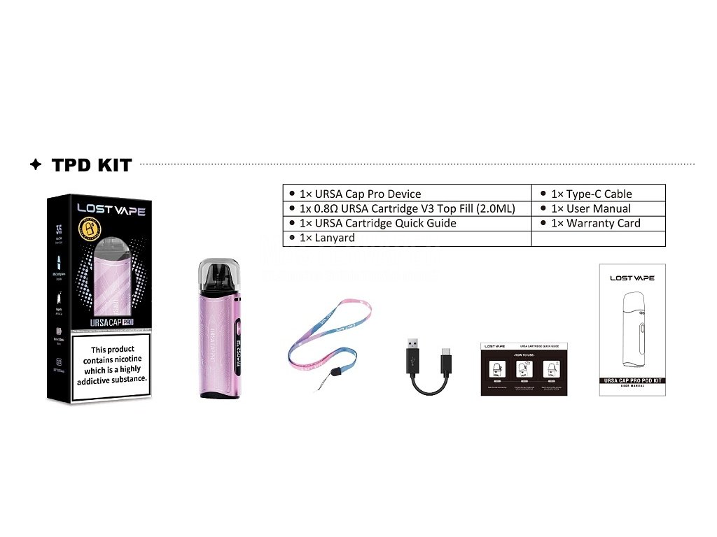- 1x Lost Vape Ursa Cap Pro (integrovaná baterie 1200mAh)