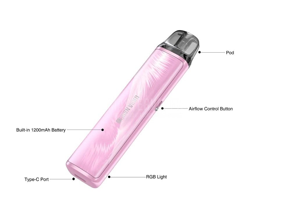Parametry a specifikaceRozměry: 113.5 x 24 x 14 mm Kapacita baterie: 1200 mAh Režimy: Automatická regulace výkonu Metody spínání potahu: Automatické Výstupní výkon: 5 - 30 W (automatický) Podporovaný odpor: 0.3 - 2.0 Ω Způsob nabíjení: USB-C port (5V / 1A) Regulace výkonu: Automatická podle odporu cartridge Objem Pod Cartridge: 2 ml Styl potahování: MTL / RDL Odpor žhavících hlav: 0.6 Ω / 0.8 Ω Regulace přívodu vzduchu (Airflow): Ano, manuální Hmotnost: 60 g Barva: Glacial Blue (Tmavě modrá) Materiál: Zinková slitina |