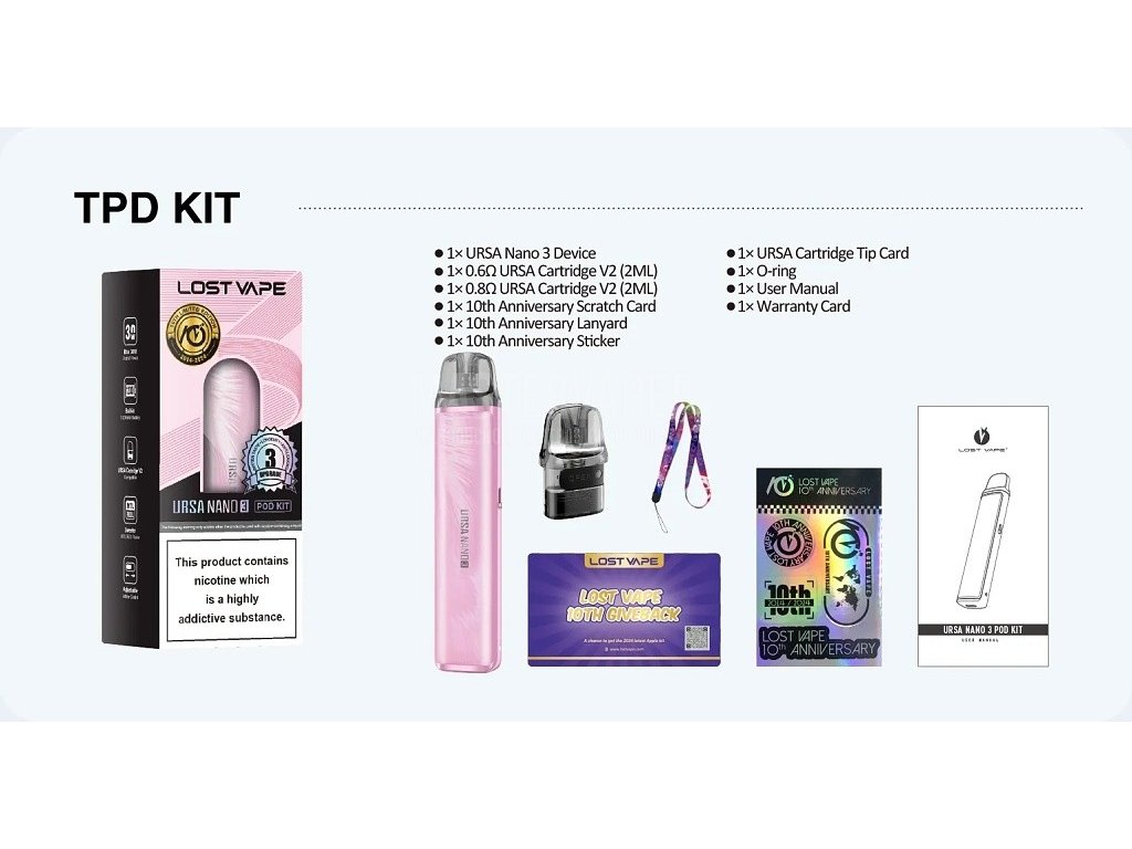 - 1x Tělo Lost Vape Ursa Nano 3 Pod Kit (integrovaná baterie 1200mAh)