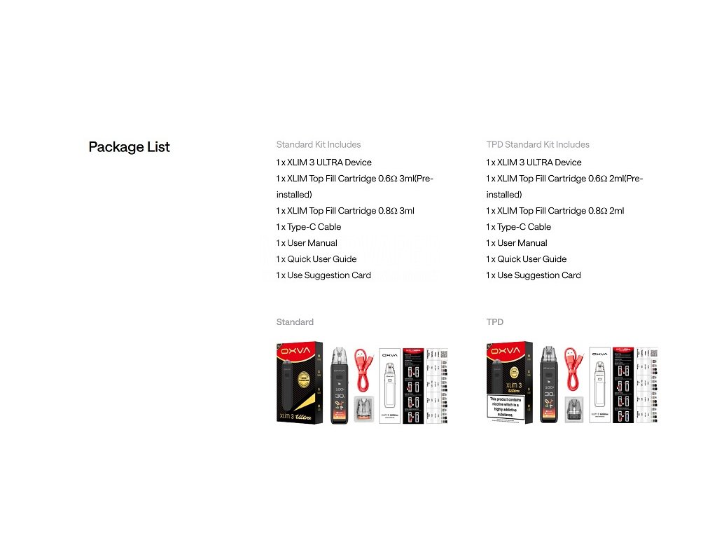 - 1x Tělo OXVA XLIM 3 Ultra (integrovaná baterie 1500mAh)