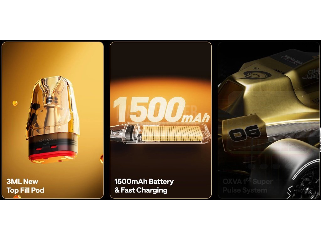 Prémiový designOXVA XLIM 3 Ultra disponuje robustní konstrukcí z vysoce kvalitní zinkové slitiny v kombinaci s odolným PCTG plastem pro pody. Moderní hranatý design s uhlazenými rohy zajišťuje pohodlné držení a prémiový pocit v ruce. Zařízení je dostupné v osmi atraktivních barevných variantách včetně efektní Ultra Carbon s karbonovým vzhledem a zlatými závodními pruhy. |