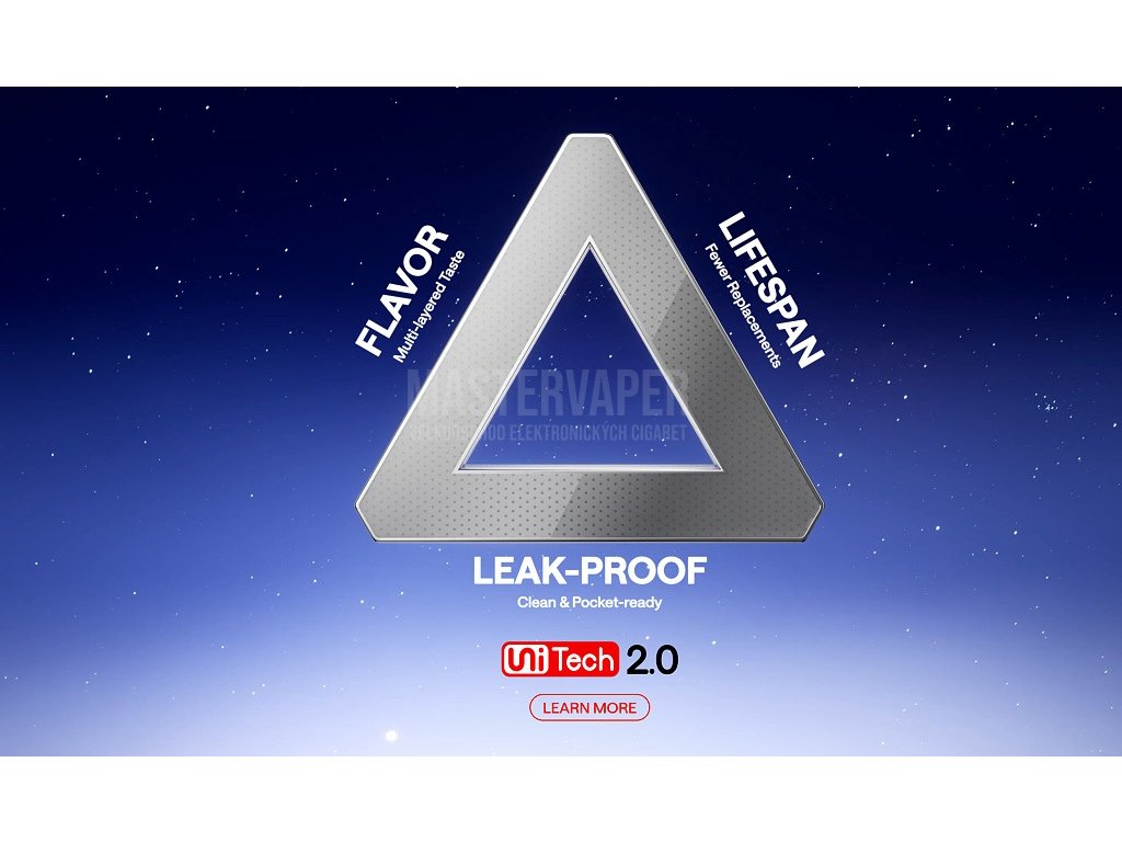 Technologie UniTech 2.0Vylepšená technologie UniTech 2.0 přináší o 50% bohatší chuť a o 30% delší životnost cartridgí oproti předchozí generaci. Pokročilé zpracování žhavících elementů zajišťuje rovnoměrné zahřívání e-liquidu a intenzivní chuťový zážitek. |