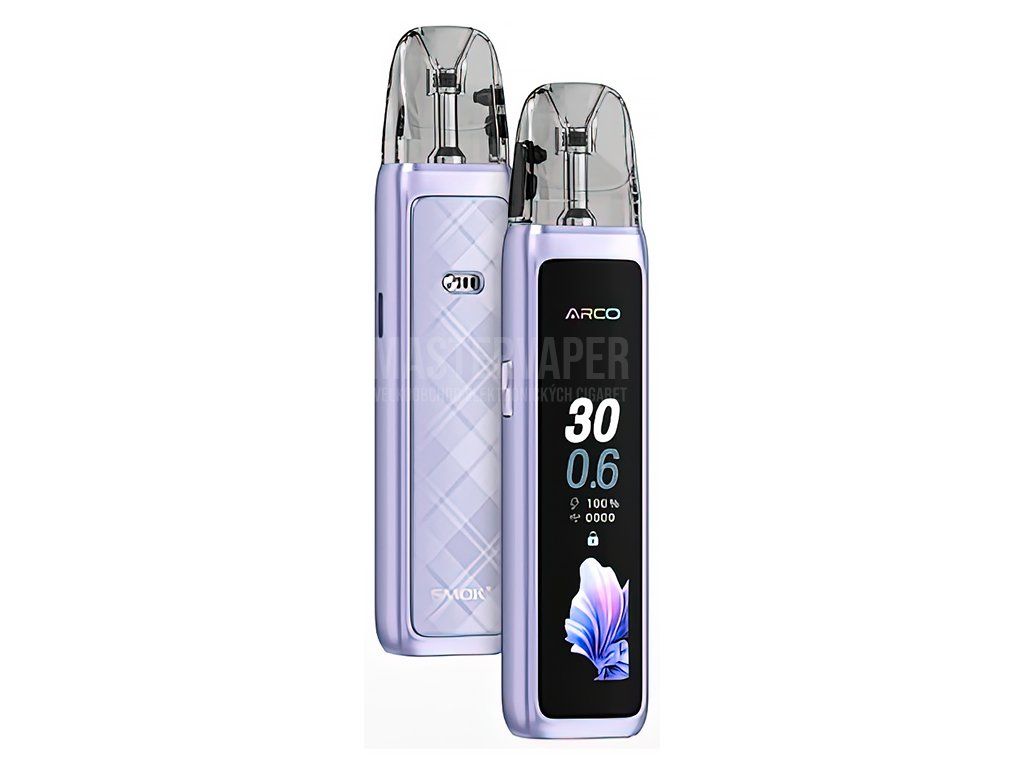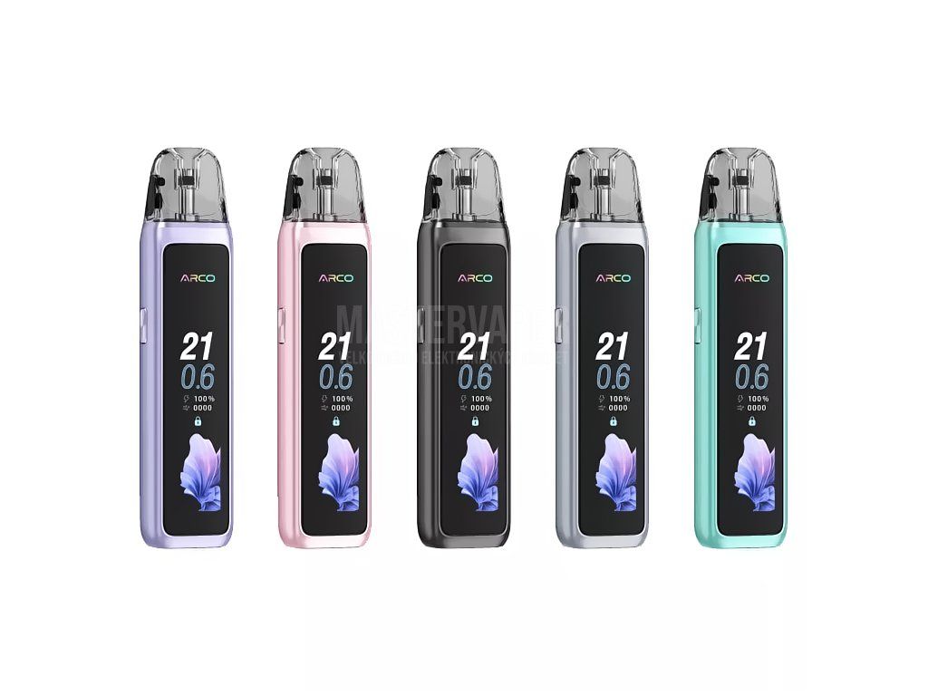 SMOK Arco Max je kompaktní a stylová elektronická cigareta třídy pod systém, která spojuje prémiové zpracování s moderními technologiemi v jednom elegantním těle. Zařízení je navrženo pro každodenní vapování a osloví jak začátečníky, tak zkušené uživatele, kteří oceňují pohodlí a spolehlivost. Tělo je zhotoveno ze zinkové slitiny s lesklým rámem a zadním panelem s IML povrchem, který dodává přístroji luxusní charakter a výraznou odolnost. Dominantou čelní strany je velký 2,25palcový barevný TFT displej, jenž přehledně zobrazuje veškeré provozní informace a nabízí výběr ze čtyř animovaných grafických témat. Vapování je aktivováno automaticky potahem z náustku, bez nutnosti mačkat jakékoliv tlačítko – provoz je tedy maximálně intuitivní a přirozený. Rozměry 112,65 × 26 × 17,2 mm zajišťují pohodlné držení v dlani a snadnou přenositelnost.