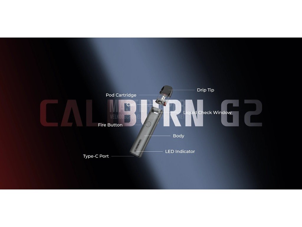 Velmi populární Pod elektronická cigareta Uwell Caliburn G se dočkala dalšího upgrade a přichází tak ve své druhé verzi, se kterou představuje nejen upravený design, ale také vylepšené parametry. V těle z hliníkové slitiny na Vás čeká integrovaná baterie s kapacitou 750mAh, která je vybavena barevnou LED pro přehlednou indikaci zbývající kapacity baterie. Pro rychlé nabíjení je na spodní straně e-cigarety připraven praktický USB-C port. Uwell Caliburn G2 nabízí jak automatický, tak i manuální systém žhavení. Vapování si tak užijete už po pouhém potahu z náustku, případně můžete i podržet tlačítko, se kterým přesně ovlivníte délku žhavení. Velkou změnou oproti předchozímu modelu je možnost nastavit si přívod vzduchu podle svých chutí a potřeb. Už není potřeba otáčet celou Pod Cartridge, samotný pod má nyní integrované kolečko, pomocí kterého nastavíte přesně takovou volnost potahu, jakou máte rádi. Rozměry 110,5mm x 22,5mm x 13mm, objem Pod Cartridge 2ml, konstanstní výkon 18W, materiál hliníková slitina, PA. Barevné provedení Shading Gray.