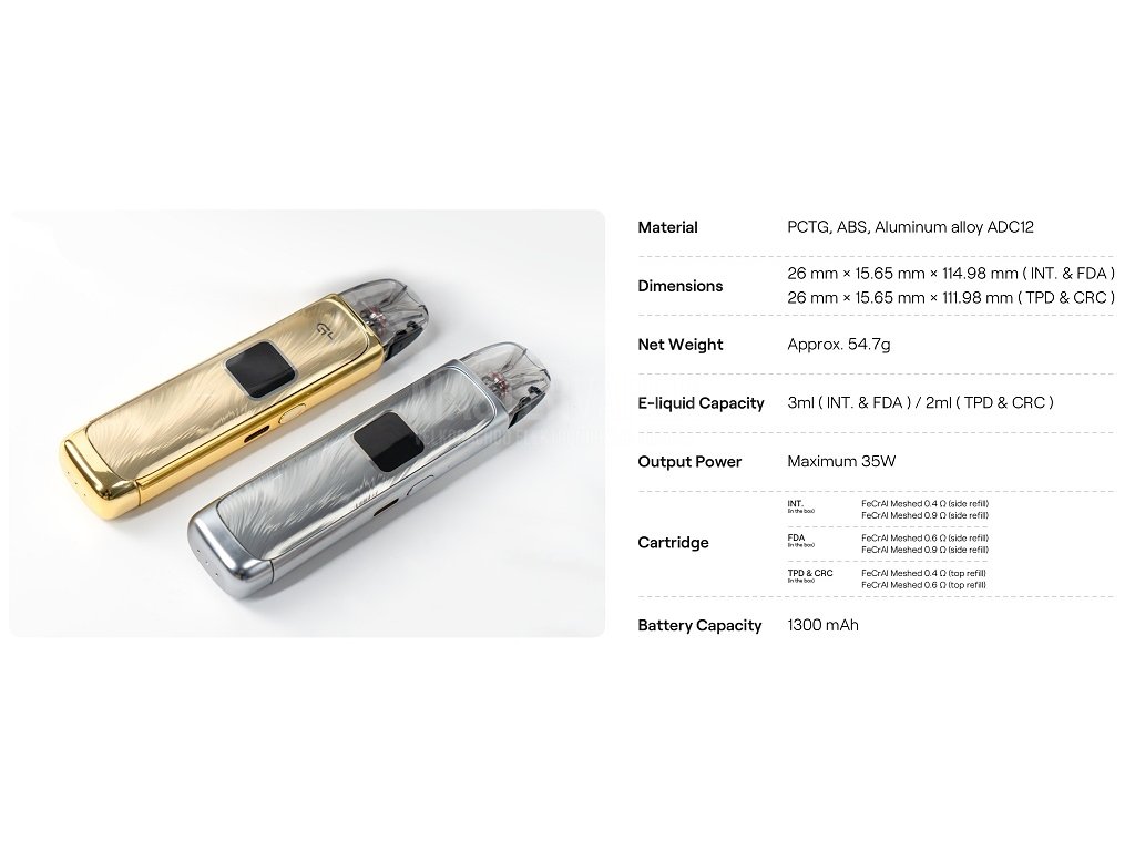 Integrovaná lithium-iontová baterie s kapacitou 1300 mAh zajišťuje celodenní vapování bez kompromisů. Velká kapacita perfektně zvládá jak intenzivní MTL, tak náročné RDL vapování. Inteligentní ochranné systémy zaručují bezpečný provoz a dlouhou životnost.