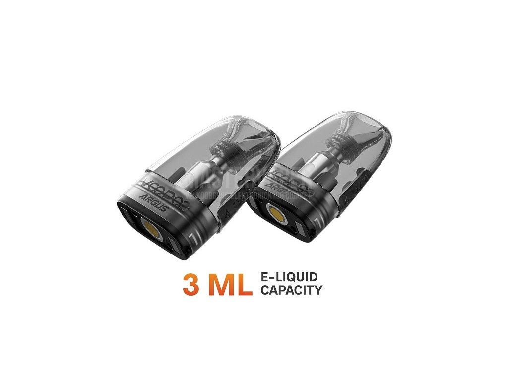 Tento model je vybaven inovativním systémem Pod Cartridgí, které umožňují snadnou výměnu žhavících hlav a rychlé doplňování e-liquidu. Součástí balení je nejnovější Argus Top Fill Cartridge V2 s revoluční technologií iCOSM Code 2.0, která kombinuje tři klíčové inovace pro dokonalý vapingový zážitek: Liquid-Seal Shield (měděný obal kolem spirálky zvyšující uzamčení oleje o 83 % a zaručující 30denní ochranu proti úniku), Mega-Core (zajišťuje okamžité nasycení a konzistentní tok e-liquidu pro rovnoměrnou chuť) a Golden Cotton (vyrobená z leteckých materiálů, odolává teplotám až 260 °C, prodlužuje životnost spirálky o 300 % a umožňuje spotřebovat až 100 ml e-liquidu bez ztráty chuti). Díky svému minimalistickému designu a široké paletě barev se stane stylovým doplňkem každého vapera.