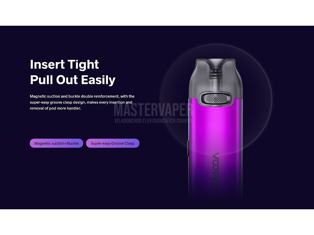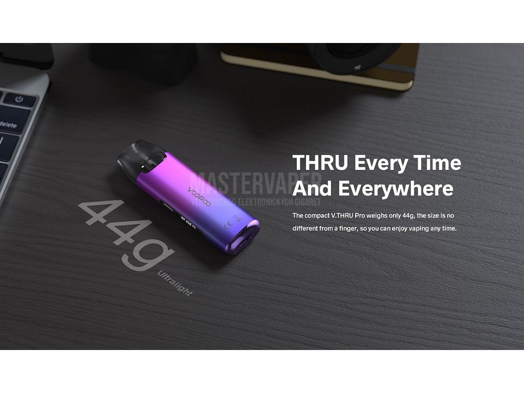 Možnost nastavení výkonu Elektronická cigareta Voopoo V.THRU Pro nabízí vskutku malé rozměry, ale také nízkou hmotnost, díky čemuž jí lze velmi snadno přenášet v téměř jakékoli kapse. Na 0,69 palcovém OLED displeji se zobrazují veškěré potřebné informace o zařízení. Elektronická cigareta disponuje inteligentním režimem dětské pojistky, aby se zabránilo náhodnému spuštění dětmi. Samotná Pod Cartridge disponuje magnetickým uchycením a její doplňování a případná výměna je tak otázkou několika málo vteřin.