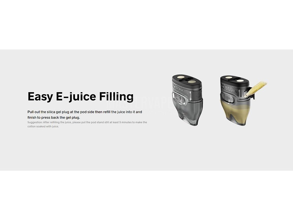 Propracované Pod Cartridge Součástí balení jsou hned dvě Pod cartridge s celkovým objemem 3 ml. Obě cartridge jsou vhodné pro klasické šlukování. První z nich nabídne integrovanou žhavící hlavu s mesh pletivem a odporem 0,7 ohm, která je ideální pro vzdušnější potah. Druhá Pod Cartridge disponuje odporem 1,2 ohm a je vhodná pro utažené MTL. Samotné plnění je velmi jednoduché a probíhá odejmutím boční silikonové krytky, kde se nachází plnící otvor. |