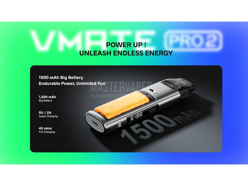 - 1x Tělo VooPoo Vmate Pro 2 Pod (integrovaná baterie 1500mAh)