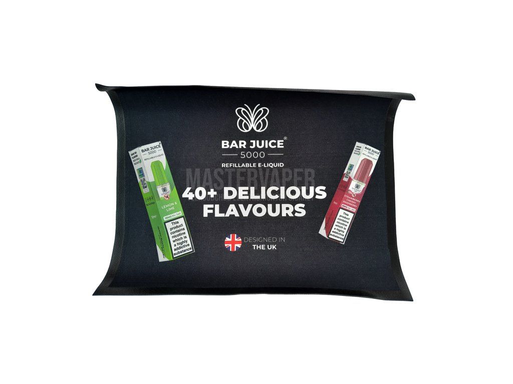Bar Juice rohožka je stylový a praktický doplněk pro vstupní prostory s výrazným designem značky Bar Juice 5000. Rohožka je vyrobena z kvalitních materiálů s černým základem a barevným potiskem obsahujícím charakteristické logo značky, nápis "BAR JUICE 5000" a text "40+ DELICIOUS FLAVOURS". Design je doplněn obrázky produktových lahviček a britskou vlajkou s textem "DESIGNED IN THE UK", což zdůrazňuje prémiový britský původ značky. Rohožka je ideální pro prodejny elektronických cigaret, kanceláře nebo jako originální doplněk domácnosti pro fanoušky značky Bar Juice.