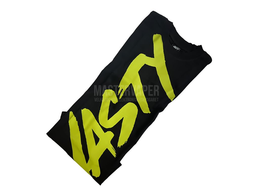 Bavlněné tričko Nasty s krátkým rukávem v černém provedení s výrazným žlutozeléným logem značky, velikost L.