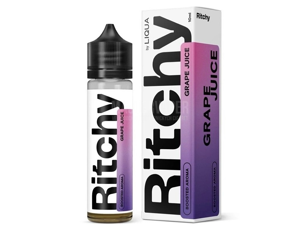 Samotné Shake & Vape balení obsahuje 10ml vysoce koncentrované uvedené příchuťě, kterou jen doplníte bází s nikotinem (případně jen samotnou bází) do celého objemu 60ml lahvičky. Samotná příchuť Ritchy by Liqua nikotin neobsahuje a slouží pouze jako finální nosič chuti výsledného e-liquidu.